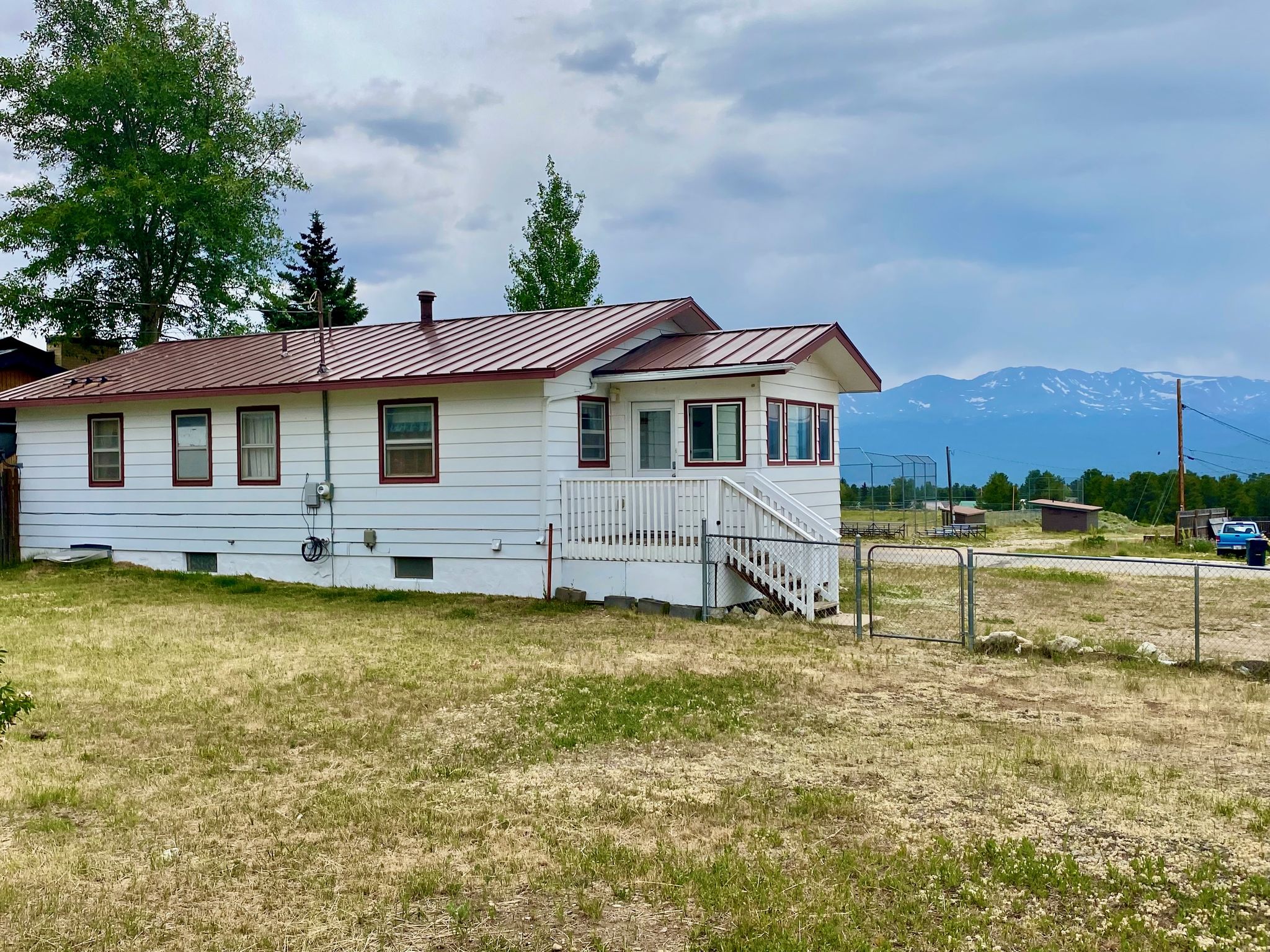 Welcome to the Scalf House, where there's plenty of space to stretch out and relax with the whole family! Three well-appointed bedrooms have a queen bed and another has a full bed for a total occupancy of eight. There's a full bath on each level, as well as large, separate living and family rooms with TV"s, and a spacious kitchen. The main level living room boasts a cozy electric fireplace and unobstructed views of the tallest mountains in the state! Located conveniently between historic downtown, the library, & the local grocery, with easy access to the Mineral Belt Trail and Ice Palace Park, the Scalf House still feels private and peaceful. WiFi & cable are available for when you’re ready to come in after exploring the great outdoors or just playing in the large corner-lot yard. This home has security cameras on the outside of the property.